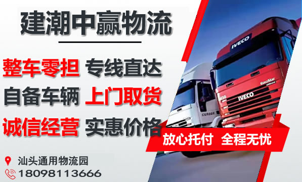 汕头到阜阳物流专线是建潮中赢物流主营重点物流线路之一,提供4.2-17.5米整车包车运输,零担专线,可上门取货,量大免费提送货;汕头到阜阳货运专线价格实惠,欢迎来电咨询。